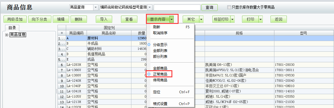 商品没有库存数量和库存金额的情况下是可以停用的,在【商品信息】的【显示内容】里如果选择了【正常商品】,那么是会把停用的商品过滤掉。