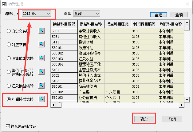 生成了期间损益结转凭证后进行记账。