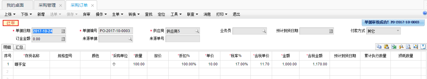 好勒!小李打开T+软件,马上做采购订单