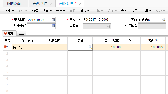 咦?为什么保存不了?颜色必录?不对啊,这只是订单啊,供应商还没有发货,我怎么知道具体都是什么颜色啊!
