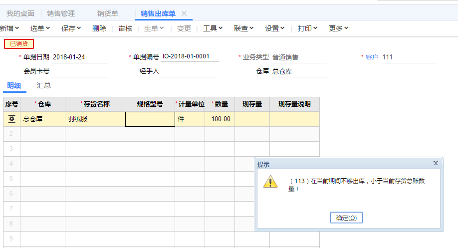 小李赶忙打开T+软件,开销售出库单。咦。。。不能出库!