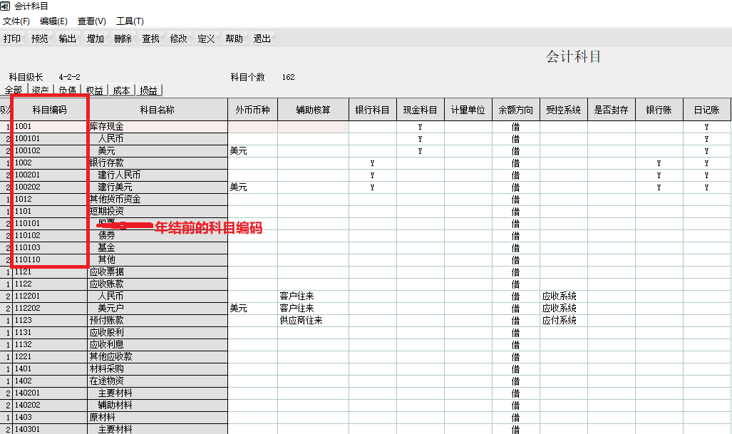 下面这个是之前的会计科目体系,使用的是小企业会计准则(2013),编码规则是4-2-2。
