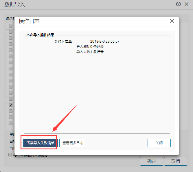三、导入反馈,通过反馈信息可以查看导入结果,如果导入失败可以下载失败清单查看原因