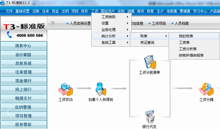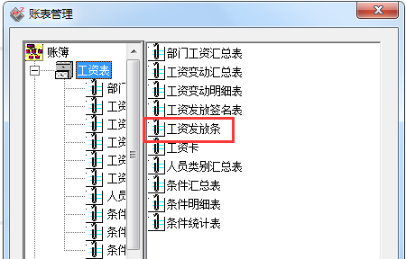 打开工资—统计分析—账表—我的账表,找到工资发放条。