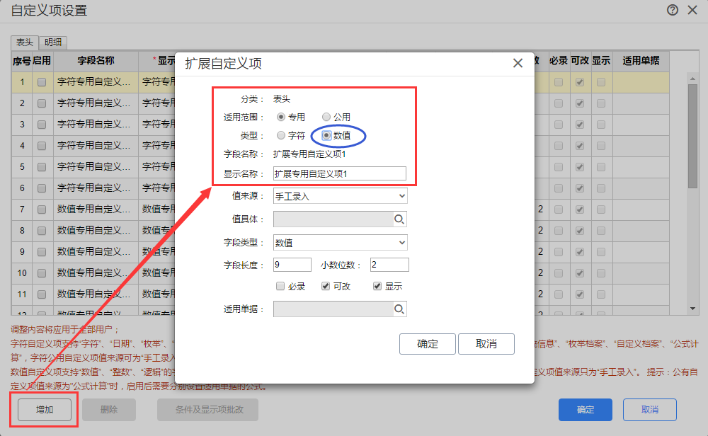 3、采购入库单单据数值自定义项用完了,找二开增加字段吗?