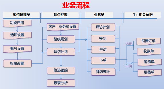应用:签到、拜访、拜访计划(通常都会涉及)、销货单、收款单、要货单、客户档案、拜访记录、拜访分析、业务报表