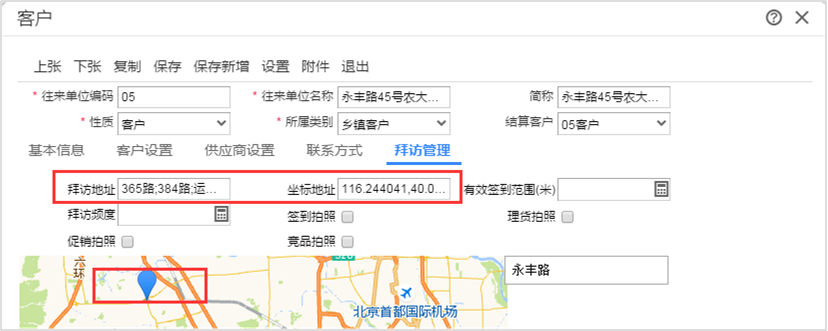 拜访参数:拜访地址、坐标地址、有效签到范围、拜访频度、拍照任务。