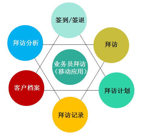 应用:签到、拜访、拜访计划(比较灵活)、销售订单、欠款对账、费用单、客户档案、拜访记录、拜访分析、业务报表