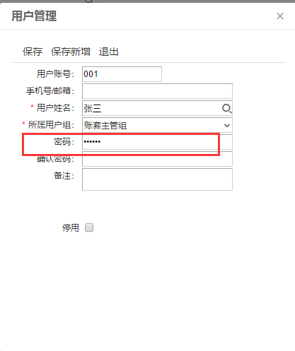情况4: 使用账套主管登录后进入用户权限中修改操作员密码,发现竟然没有密码输入框?