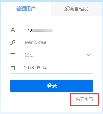 这是由于账套开通了云应用,在软件登录首页使用操作员开通云应用的手机号或邮箱登录,并点击【忘记密码】。