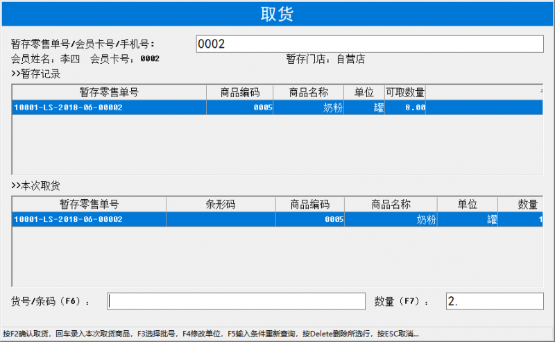 5、后续顾客可依据手机号、会员卡号、暂存零售单号来取货。