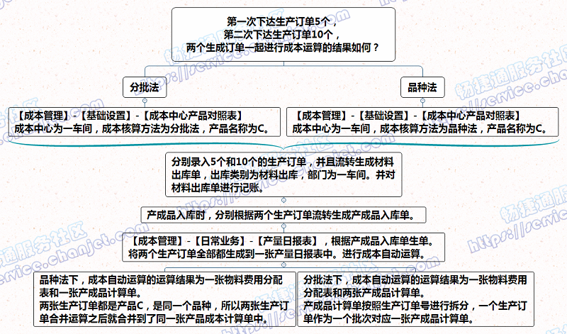例如:第一次下达生产订单5个,第二次下达生产订单10个,两个生成订单一起采用不同的成本核算方式进行成本运算的结果如何?