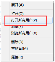 4点击开始--所有程序--启动,右键选择“打开所有用户”;