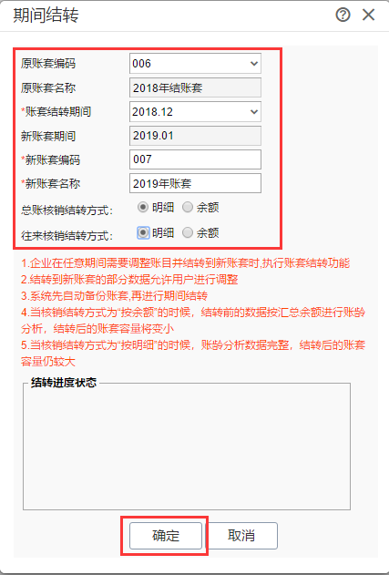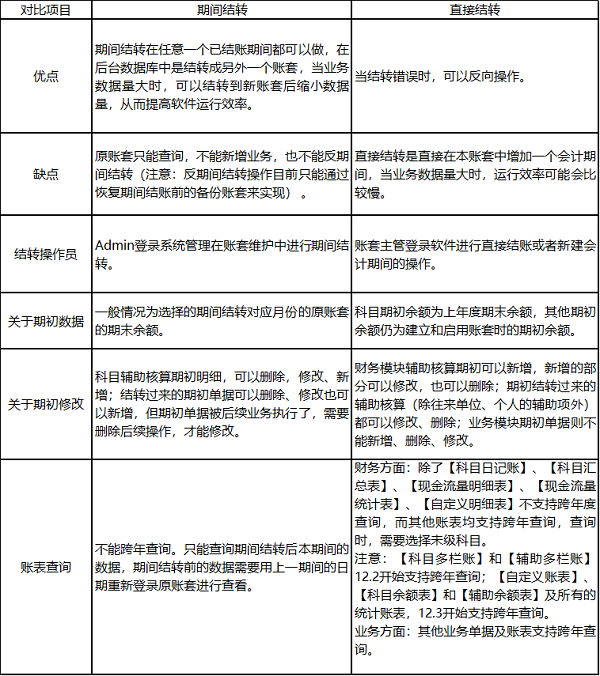 期间结转是可以选择任意一个已经月结的期间进行结转,结转时会自动生成新的账套,会将该月的期末余额转为新账套的期初余额,并且将这个结转期间之后的业务单据结转为新账套的日常单据,可继续进行处理。
