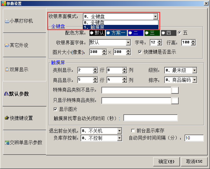 答:在【POS端】中的【参数设置】里将【收银界面模式】选择为【触屏】即可。