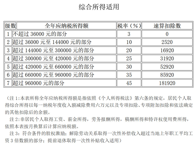 税率依据个人所得税税率表(累计速算扣除)