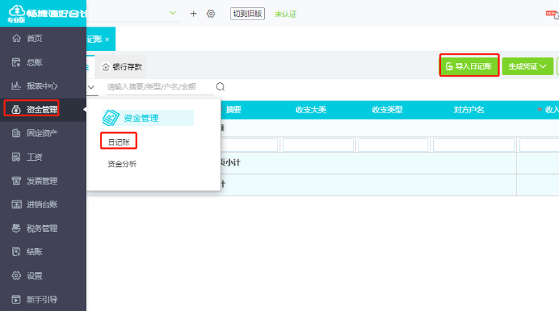 采用好会计——日记账功能!支持银行流水导入生成日记账,经由日记账生成凭证可有效避免日记账与对账单金额不一致的情况!