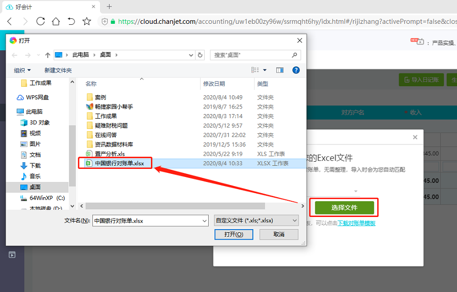①导入银行存款对账单。登录后依次点击【资金管理】-【日记账】-【导入日记账】-选择银行账户并点击【选择文件】将对账单的Excel表格导入。