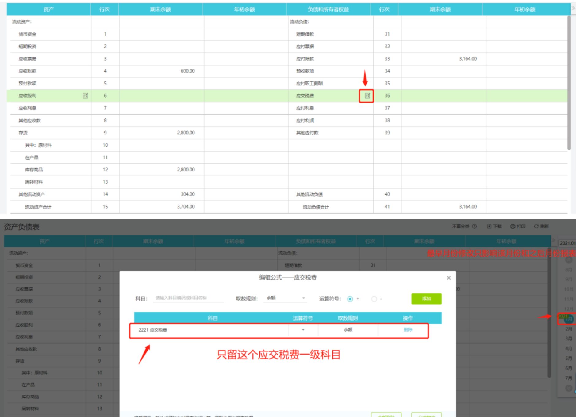 ①其他流动资产:点击【其他流动资产】科目上的【FX】,然后将编辑公式界面中涉及到应交税费的科目全部删除;