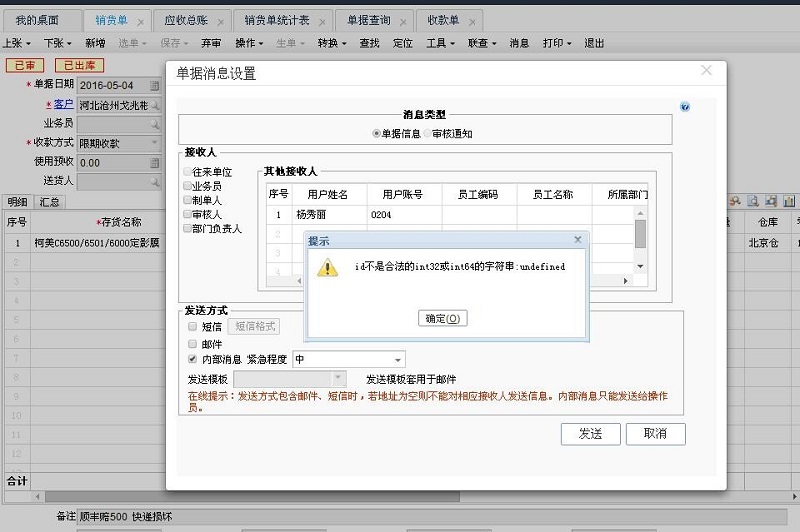 畅捷通T+12.1发送的消息提示这样的提示id不是合法的int32或int64的字符串