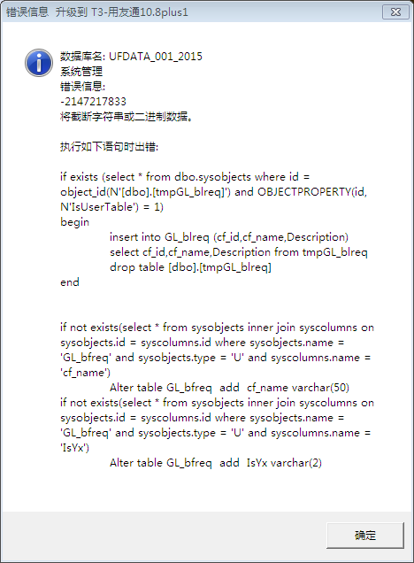 T3标准版10.8.2的数据升级到T3标准版10.9,出现错误