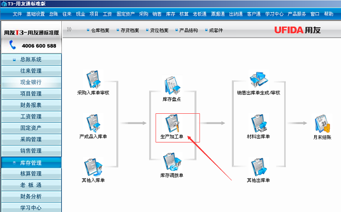 您可以按F1帮助文档进行参考具体流程的,生产加工单做完领料出库,做材料出库单,最后生成产成品入库单入库;