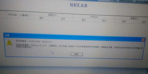 T3标打开科目汇总表时报错
