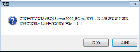 用友T3标准版安装的时候提示如下错误:安装程序没有找到SQL2005_BC.msi文件