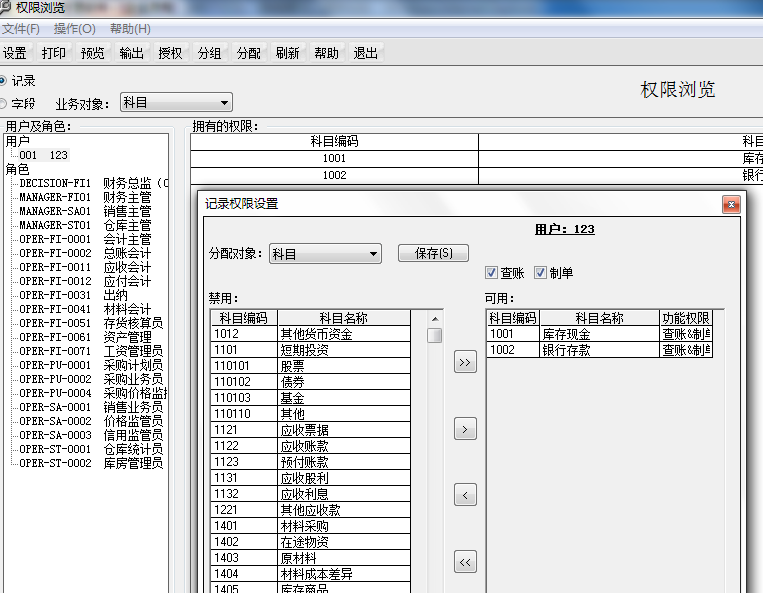 T6数据权限设置后操作员还能看到,查到此科目也能做凭证,是不是哪设置错了?还能使用所有科目。