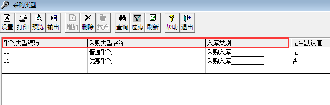 1、点击基础档案--购销存--采购类型;