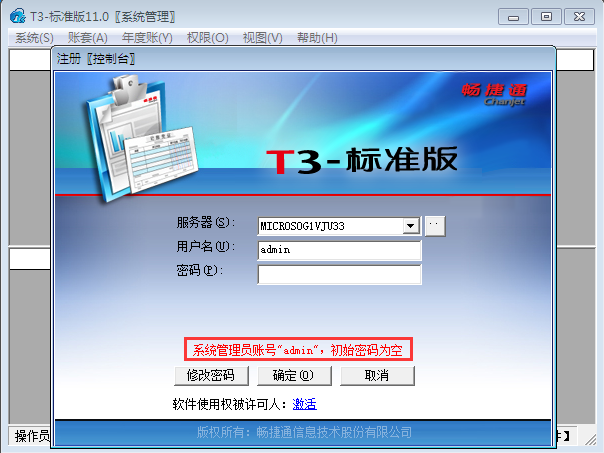 2、输入管理员admin(默认密码为空)点击确认;