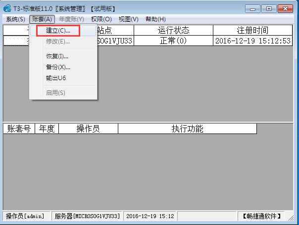 3、点击账套—建立;