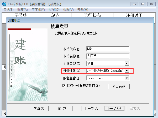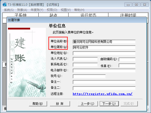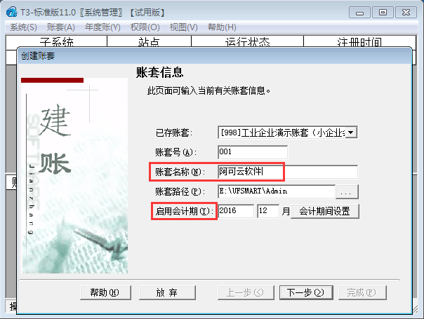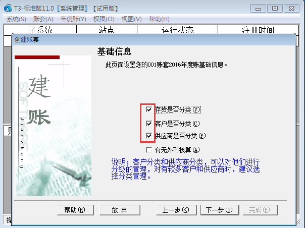 用友T3标准版11.0如何建立账套?