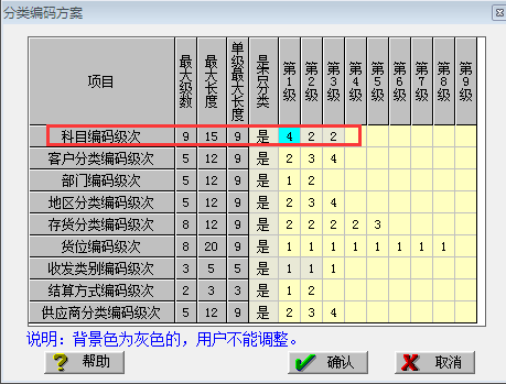 9、弹出科目编码框,按需更改编码规则后关闭此界面;