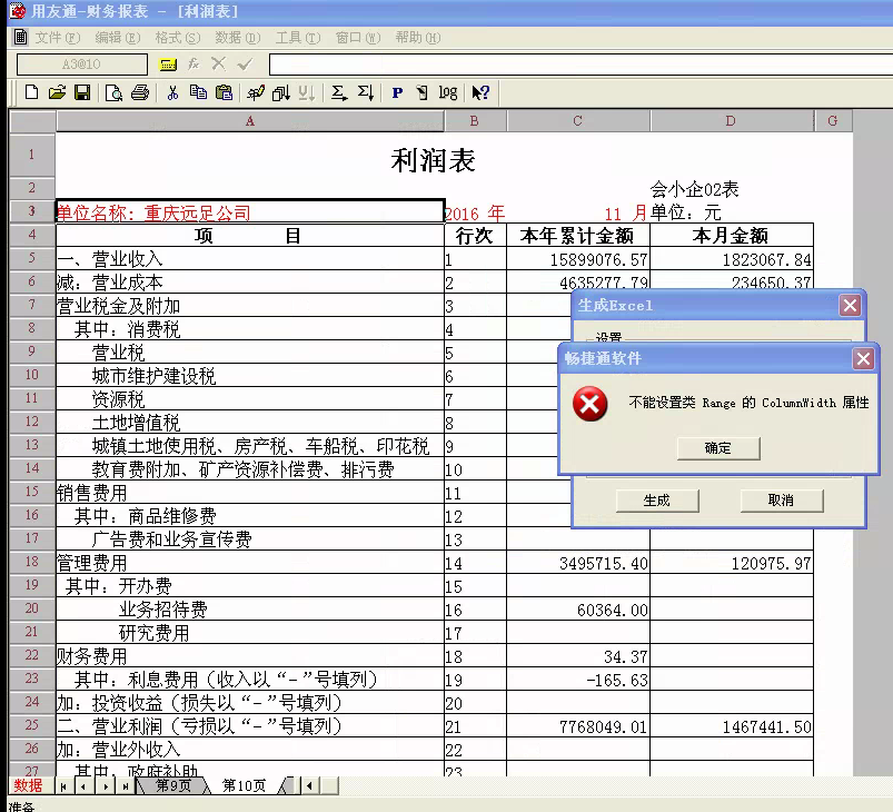 用友t3财务报表导出EXCL时提示"不能设置类Range的ColumnWidth属性"如何解决?