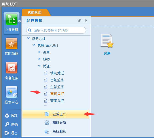 3.打开业务工作中的财务会计》总账》凭证》审核凭证按钮。