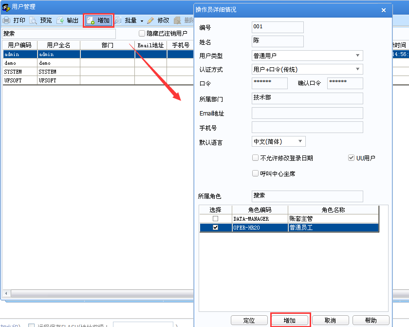 U8V12.5如何增加操作员?