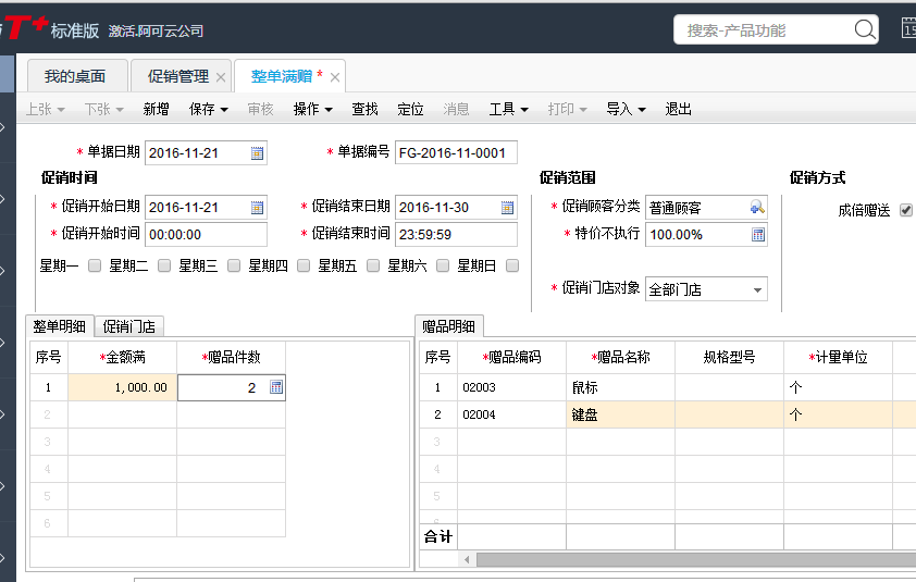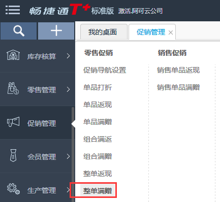 1、模块列表中点击促销管理--整单赠送;