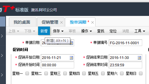 用友T+12.1如何设置购满一定金额赠送商品?