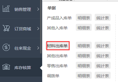 1、模块列表中点击库存核算--材料出库单;