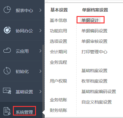 1、左边模块列表点击系统管理---单据设计;