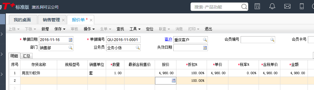 怎样填写用友T+12.1销售报价单?