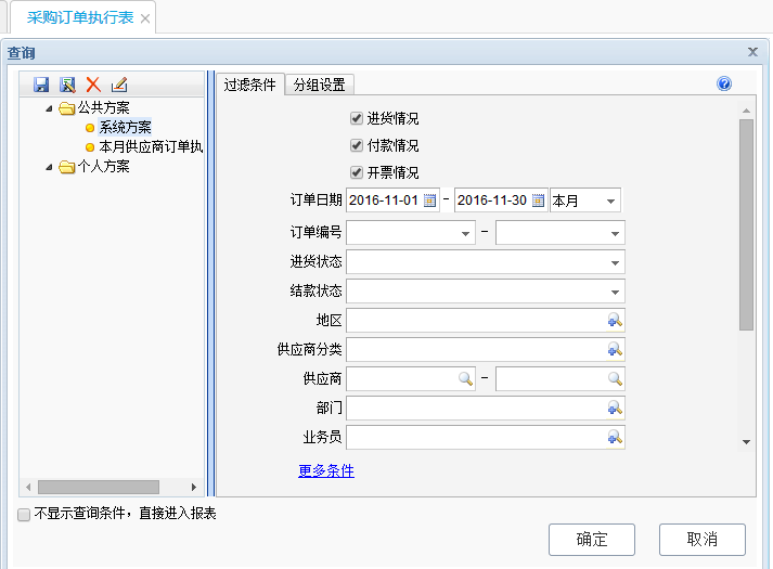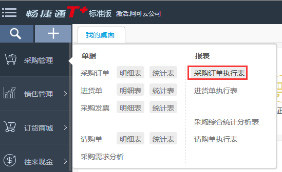 1、模块列表中点击采购管理—采购订单执行表;