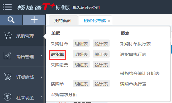 1、模块列表中点击采购管理—进货单;