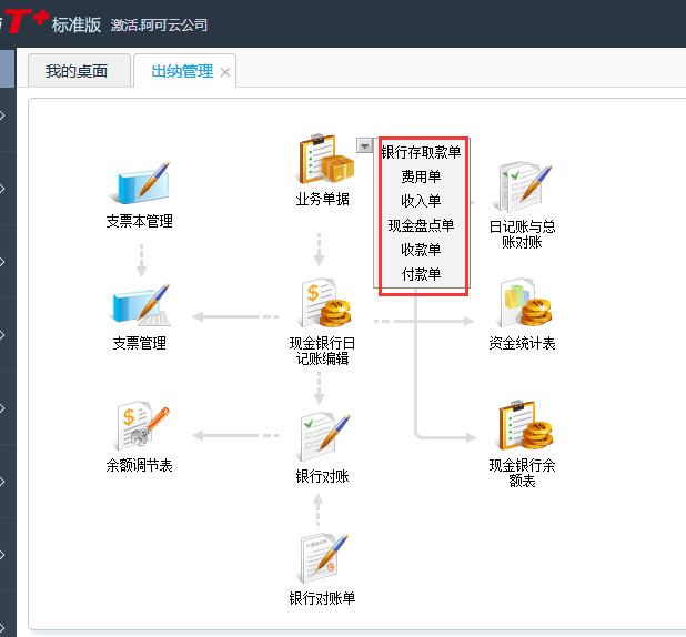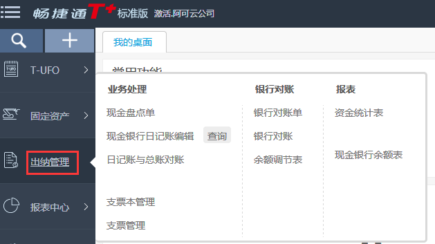 2、左边模块列表点击出纳管理;