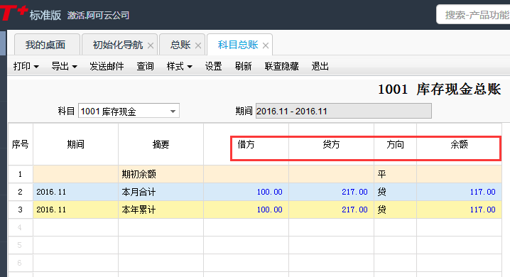 用友T+12.1如何查看科目总账明细账?