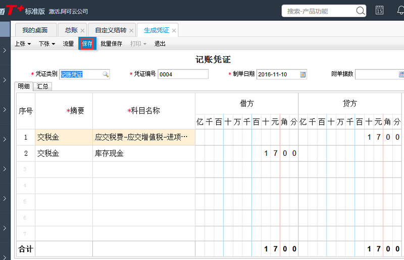 7、查看凭证没问题后保存。