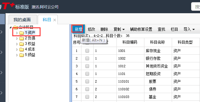 如何增加用友T+12.1会计科目?