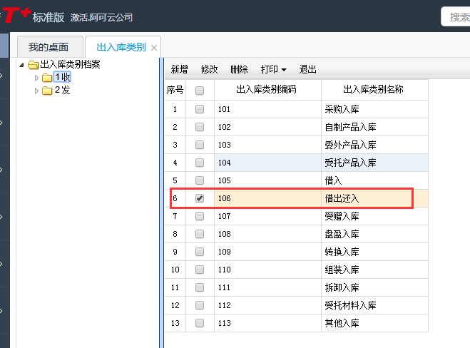 怎样修改用友T+12.1的收发类别?