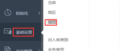 2.左下角点击基础设置---项目;